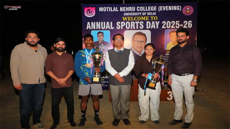 नई दिल्ली। मोतीलाल नेहरू कॉलेज (सांध्य) में वार्षिक खेलकूद प्रतियोगिता 2025–26 सफलतापूर्वक संपन्न भेल। तीन दिन तक चलल एहि आयोजन में छात्र-छात्रा, शिक्षक आ गैर-शिक्षण कर्मचारी सभक उत्साहपूर्ण भागीदारी देखए के मिलल, जाहि सँ पूरा परिसर ऊर्जा आ उमंग सँ भरि गेल।